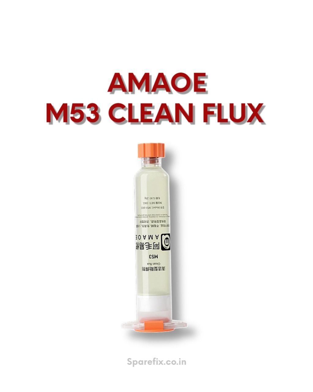 AMAOE M53 IS A NO-CLEAN, LEAD-FREE SOLDERING FLUX / PASTE IN A 10 CC SYRINGE — DESIGNED FOR PCB, IC, MOBILE PHONE, CPU, LED AND BGA REPAIR / SOLDERING TASKS.