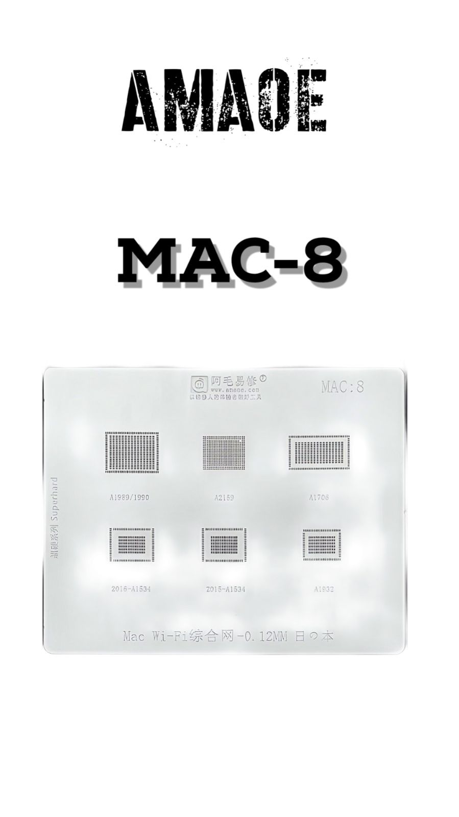 AMAOE MAC-8 STENCIL IS DESIGNED FOR PRECISE SOLDER PASTE APPLICATION ON PCB COMPONENTS, ENSURING ACCURATE PLACEMENT AND RELIABLE SOLDERING RESULTS.