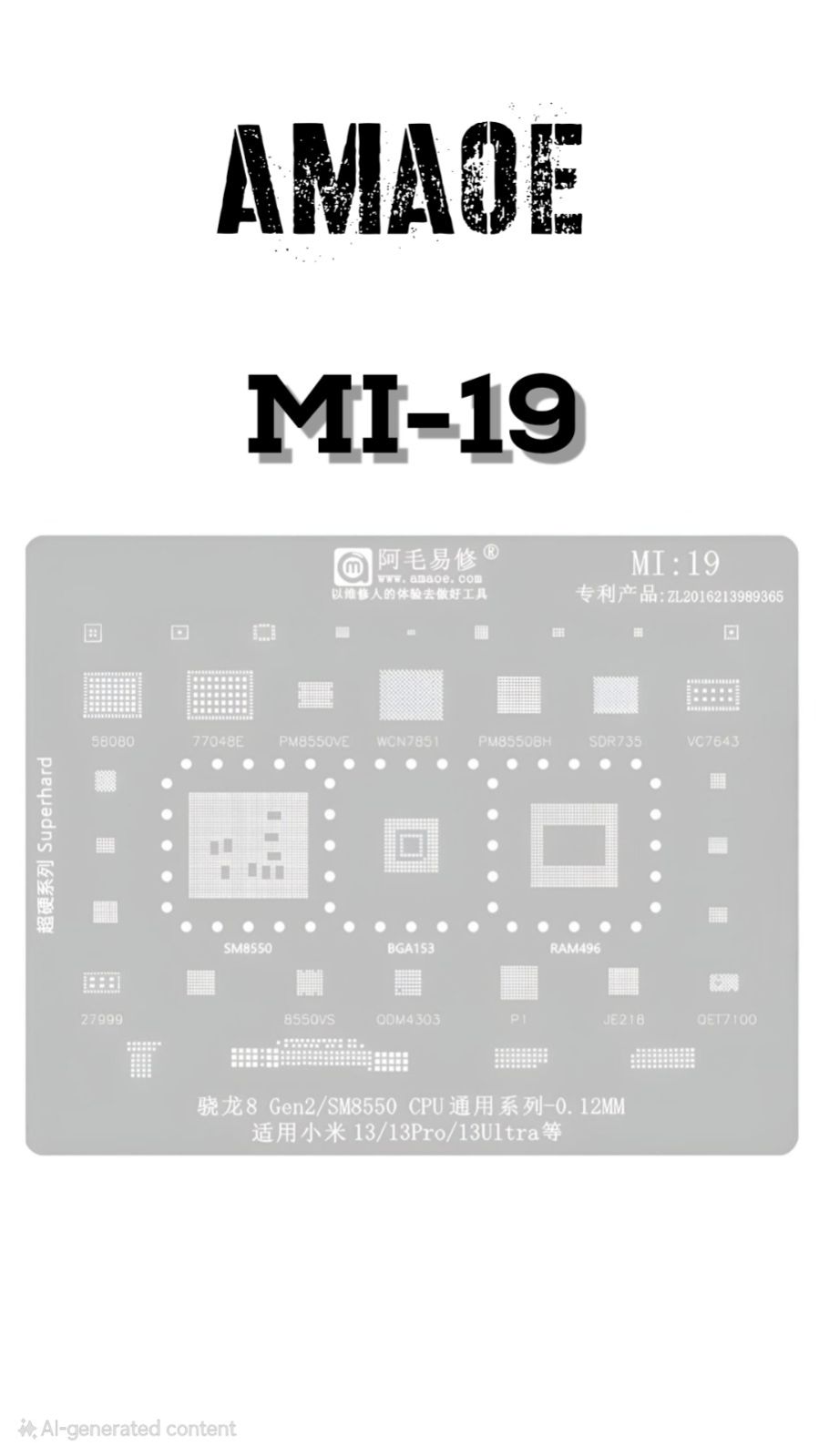 AMAOE MI-19 STENCIL IS DESIGNED FOR PRECISE SOLDER PASTE APPLICATION ON PCB COMPONENTS, ENSURING ACCURATE PLACEMENT AND RELIABLE SOLDERING RESULTS.