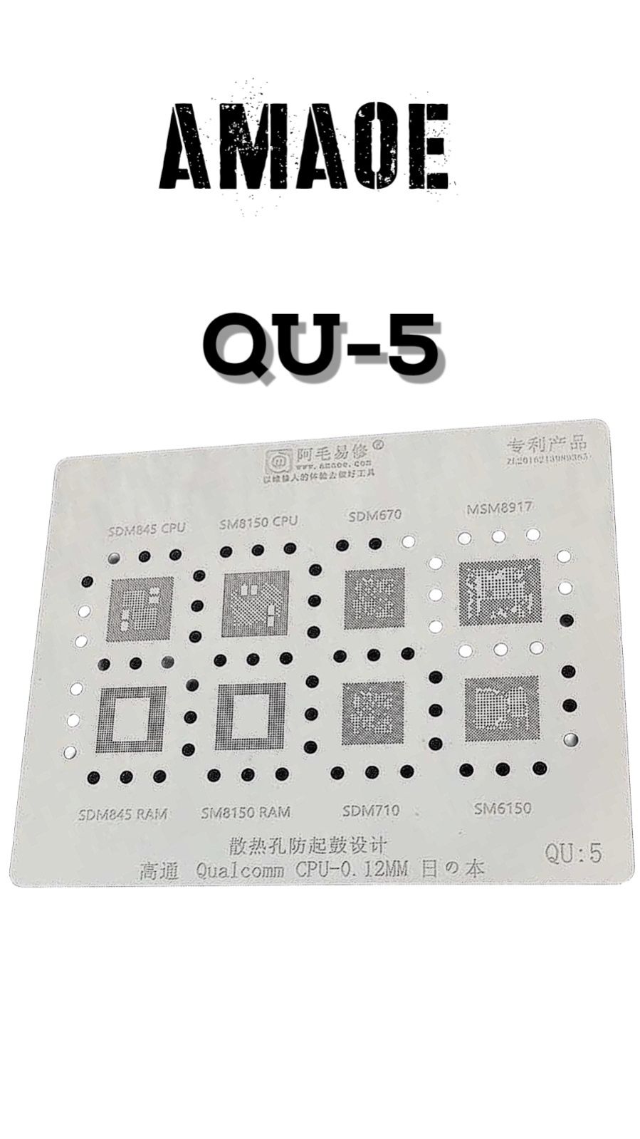 AMAOE QU5 STENCIL FOR PRECISE SOLDER PASTE APPLICATION ON SMD PADS, ENSURING ACCURATE IC REBALLING AND RELIABLE, EASY SOLDERING.