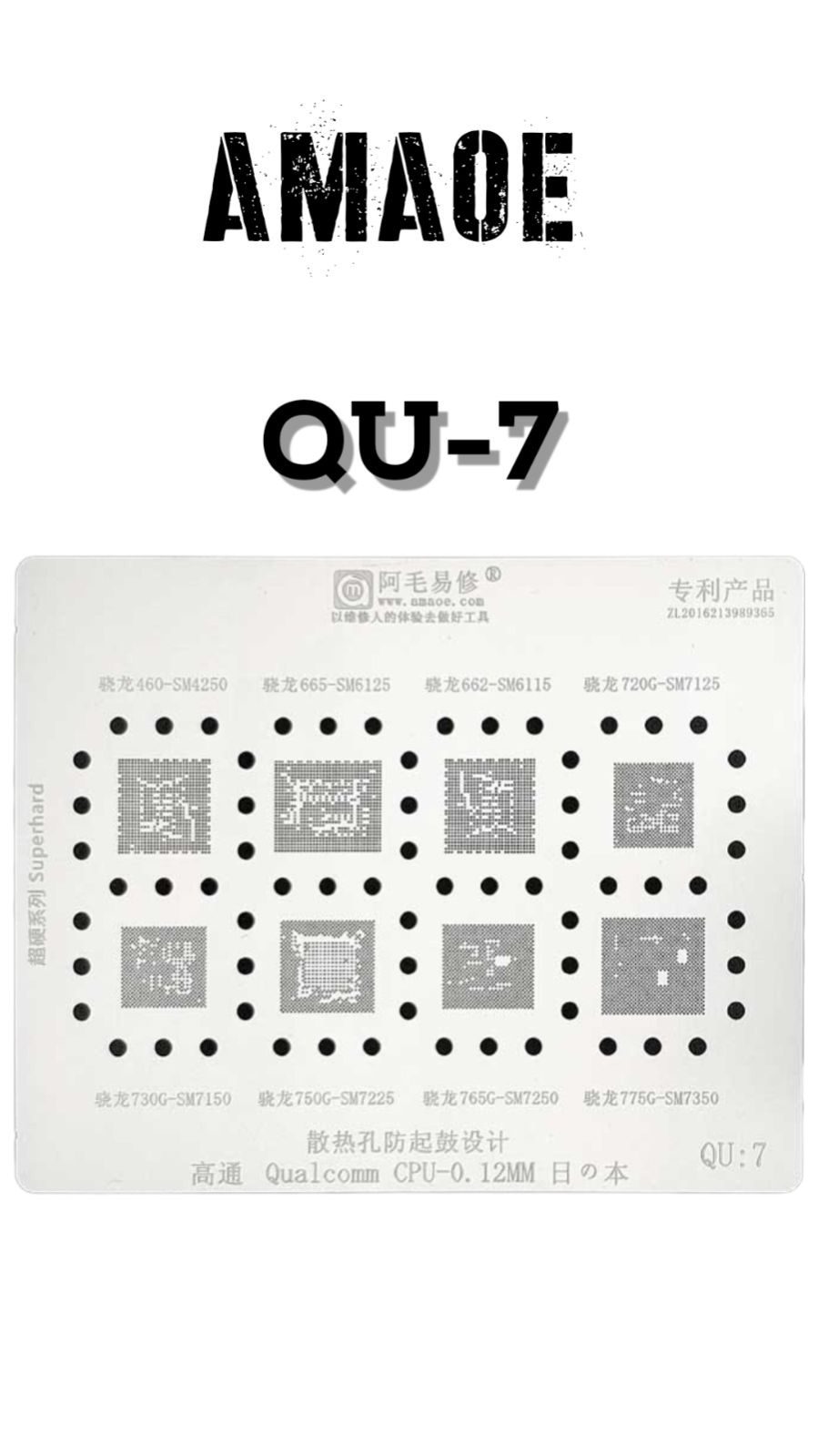 AMAOE QU7 STENCIL FOR PRECISE SOLDER PASTE APPLICATION ON SMD PADS, ENSURING ACCURATE IC REBALLING AND RELIABLE, EASY SOLDERING.