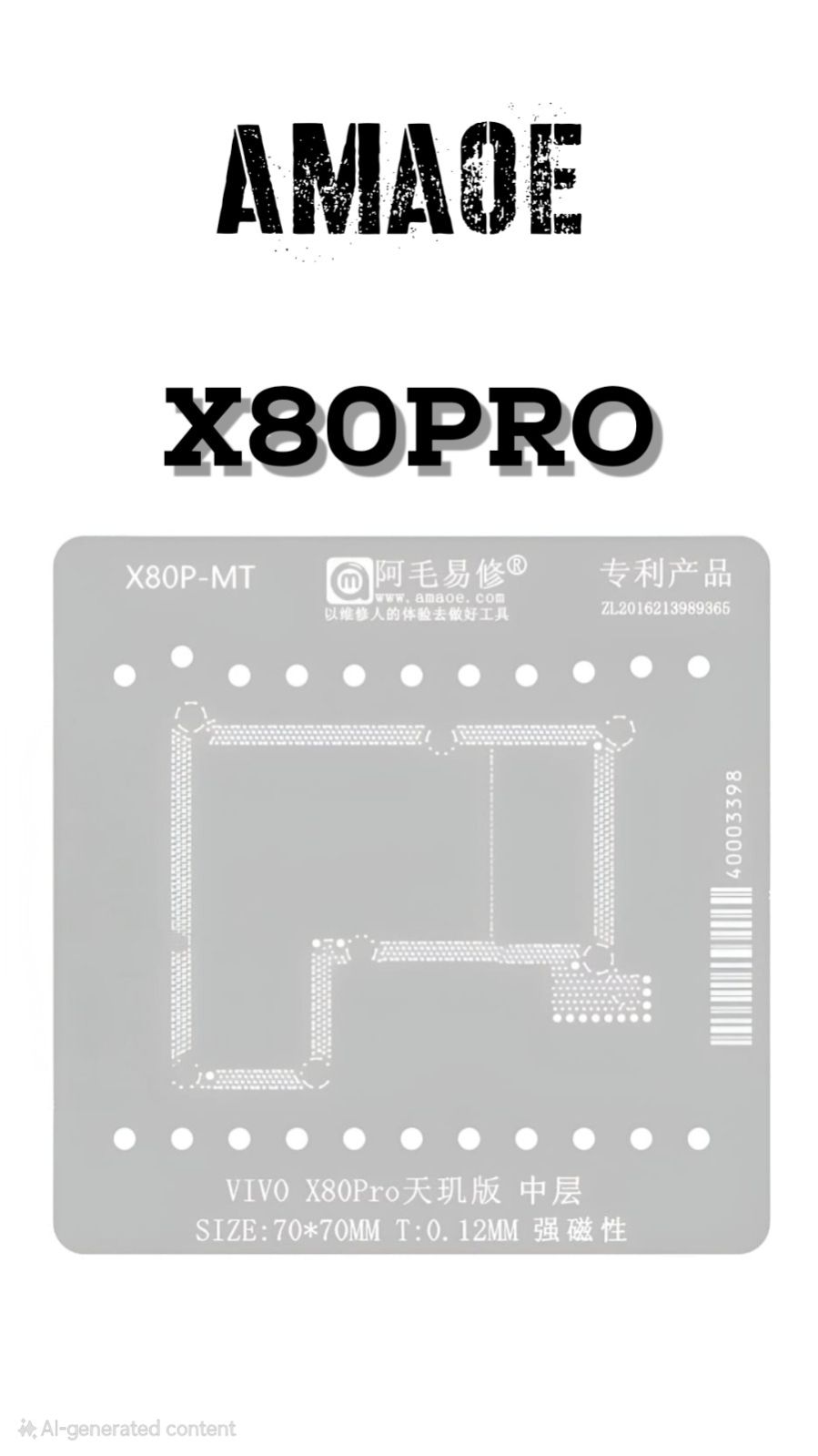 AMAOE X80P-MT MIDDLE LAYER STENCIL FOR VIVO X80 PRO IS USED FOR PRECISE REBALLING AND SOLDER PASTE APPLICATION ON THE MOTHERBOARD MIDDLE LAYER.