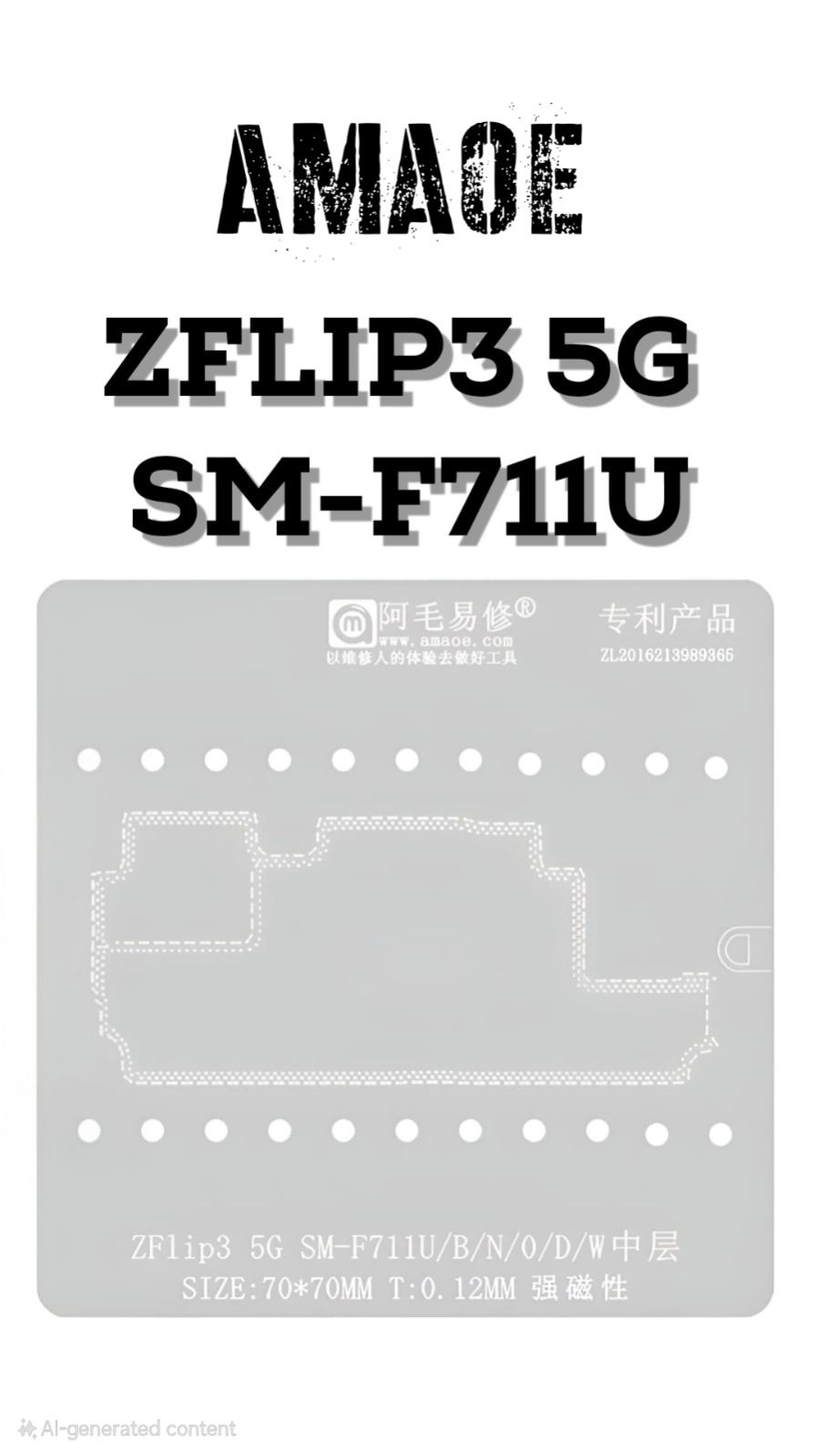 HIGH-QUALITY AMAOE STENCIL DESIGNED FOR SAMSUNG ZFLIP3 5G SM-F711 SERIES. IDEAL FOR MIDDLE LAYER MOTHERBOARD REBALLING AND IC REPAIR WITH PERFECT ALIGNMENT AND DURABILITY.