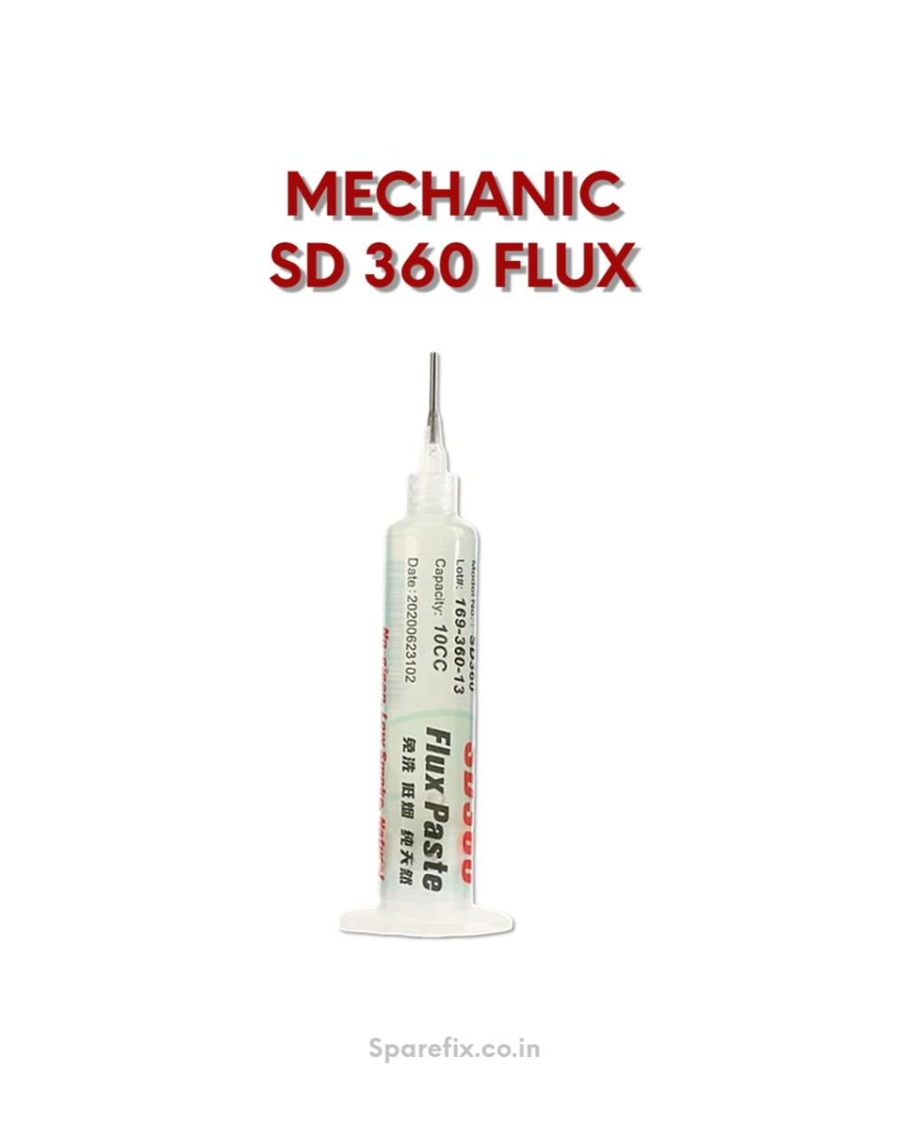 A TRANSPARENT, NO-CLEAN SOLDER FLUX PASTE FOR PRECISE PCB / SMD / BGA WELDING AND IC REPAIR, WITH GOOD WETTING, LOW SMOKE AND MINIMAL RESIDUE.