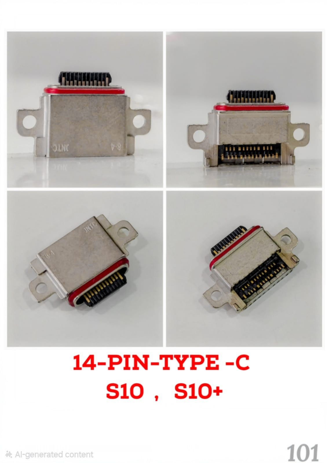 SAMSUNG S10/S10 PLUS TYPE-C CHARGING CONNECTOR CONNECTS THE PHONE TO POWER AND DATA PORTS, SUPPORTING CHARGING AND DATA TRANSFER.