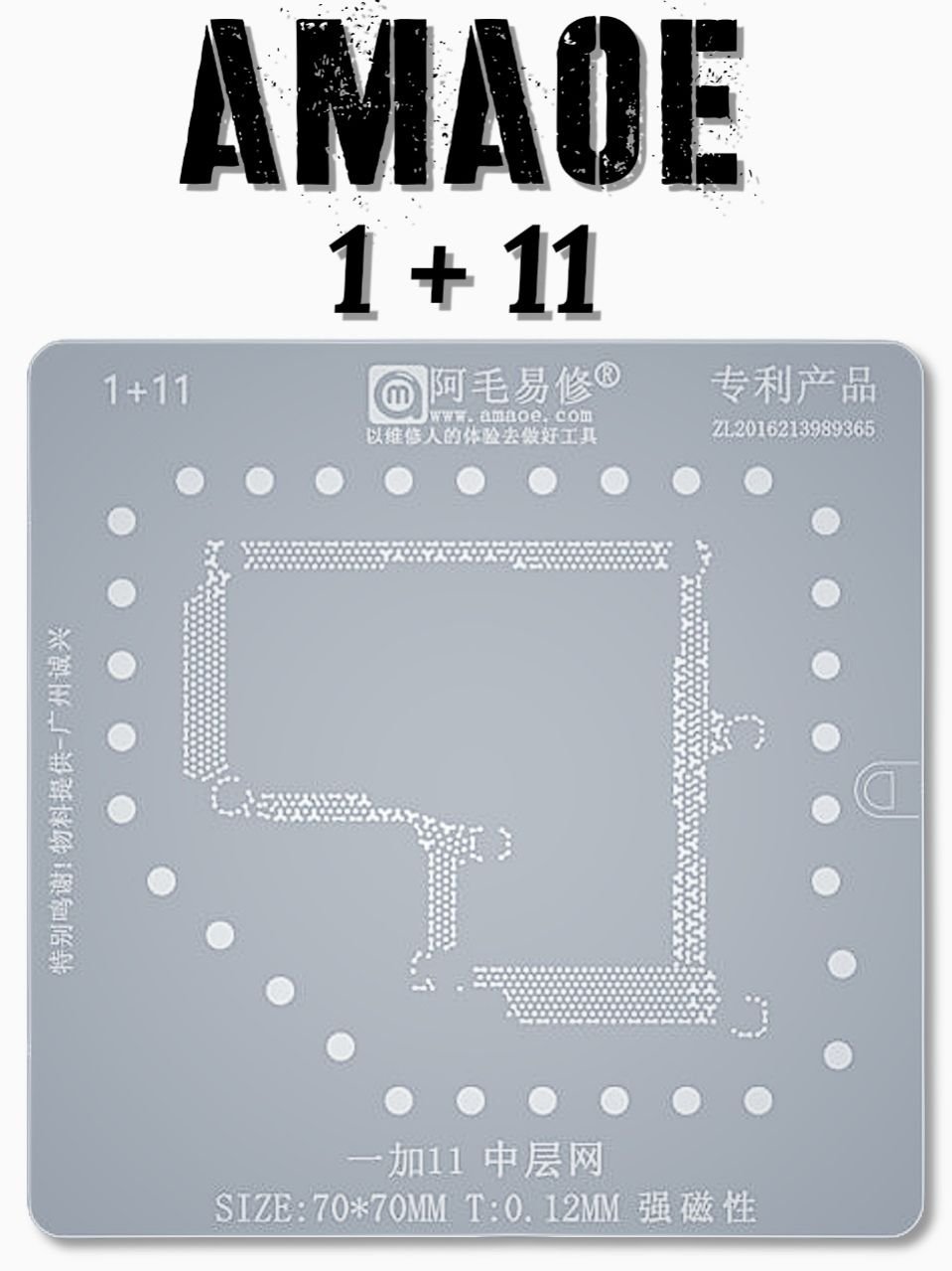 AMAOE 1+11 MIDDLE LAYER STENCIL DESIGNED FOR ACCURATE BGA REBALLING OF ONEPLUS 11 MOTHERBOARD.