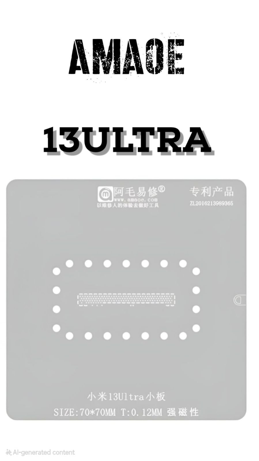 AMAOE 13 ULTRA STENCIL FOR MI 13 ULTRA WIFI MOTHERBOARD REBALLING TOOL DESIGNED FOR PRECISE BGA CHIP REPAIR AND SOLDERING WORK.