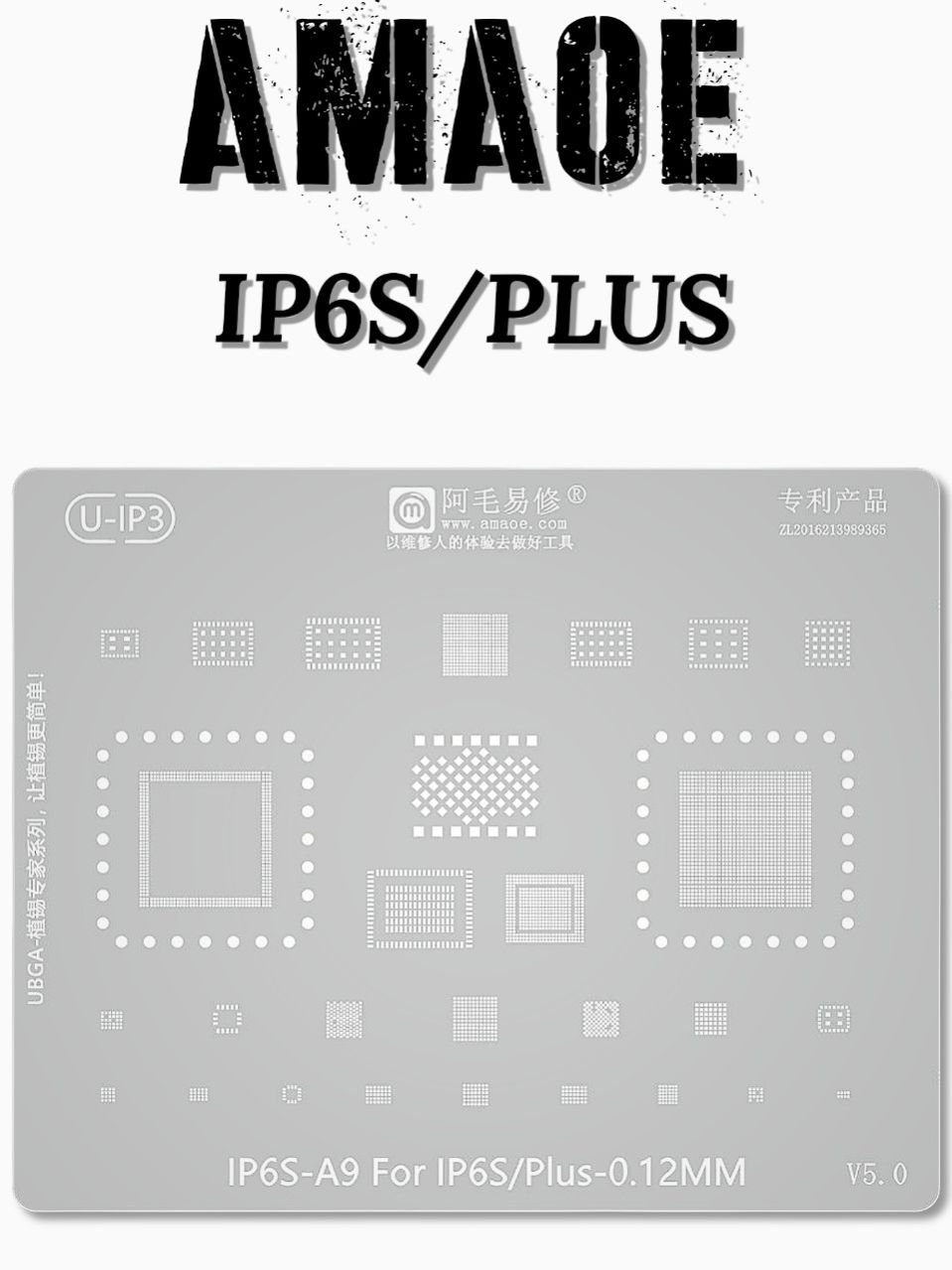 AMAOE IP 6S/6SP-A9 STENCIL IS A HIGH-QUALITY, PRECISION LASER-CUT BGA REBALLING STENCIL DESIGNED FOR IPHONE 6S AND 6S PLUS A9 CPU CHIP REPAIR.