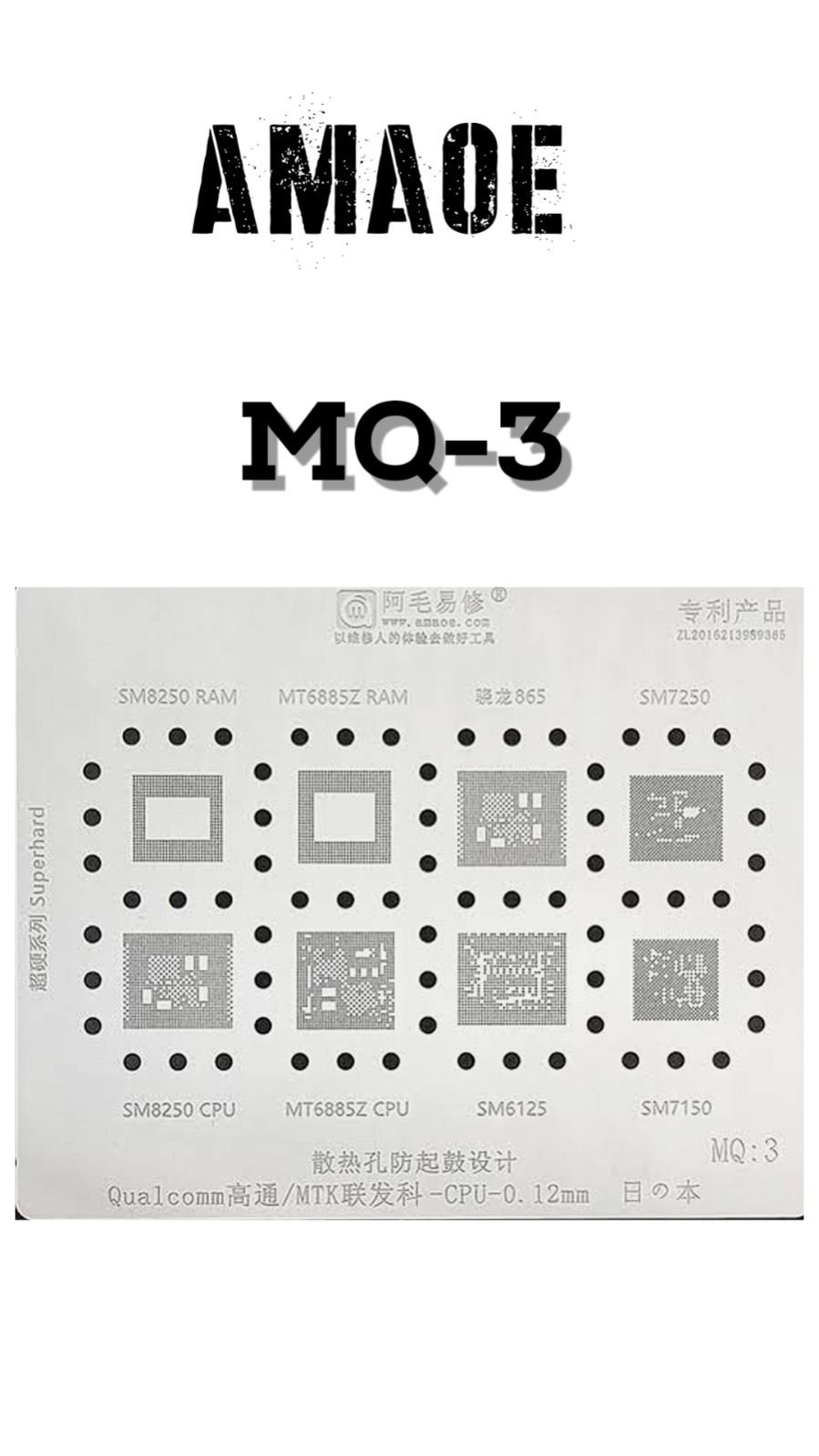 AMAOE MQ3 STENCIL DESIGNED FOR ACCURATE SOLDER PASTE DEPOSITION ON MQ3 PCB PADS, ENSURING CLEAN, PRECISE, AND RELIABLE COMPONENT REPAIR OR REBALLING.