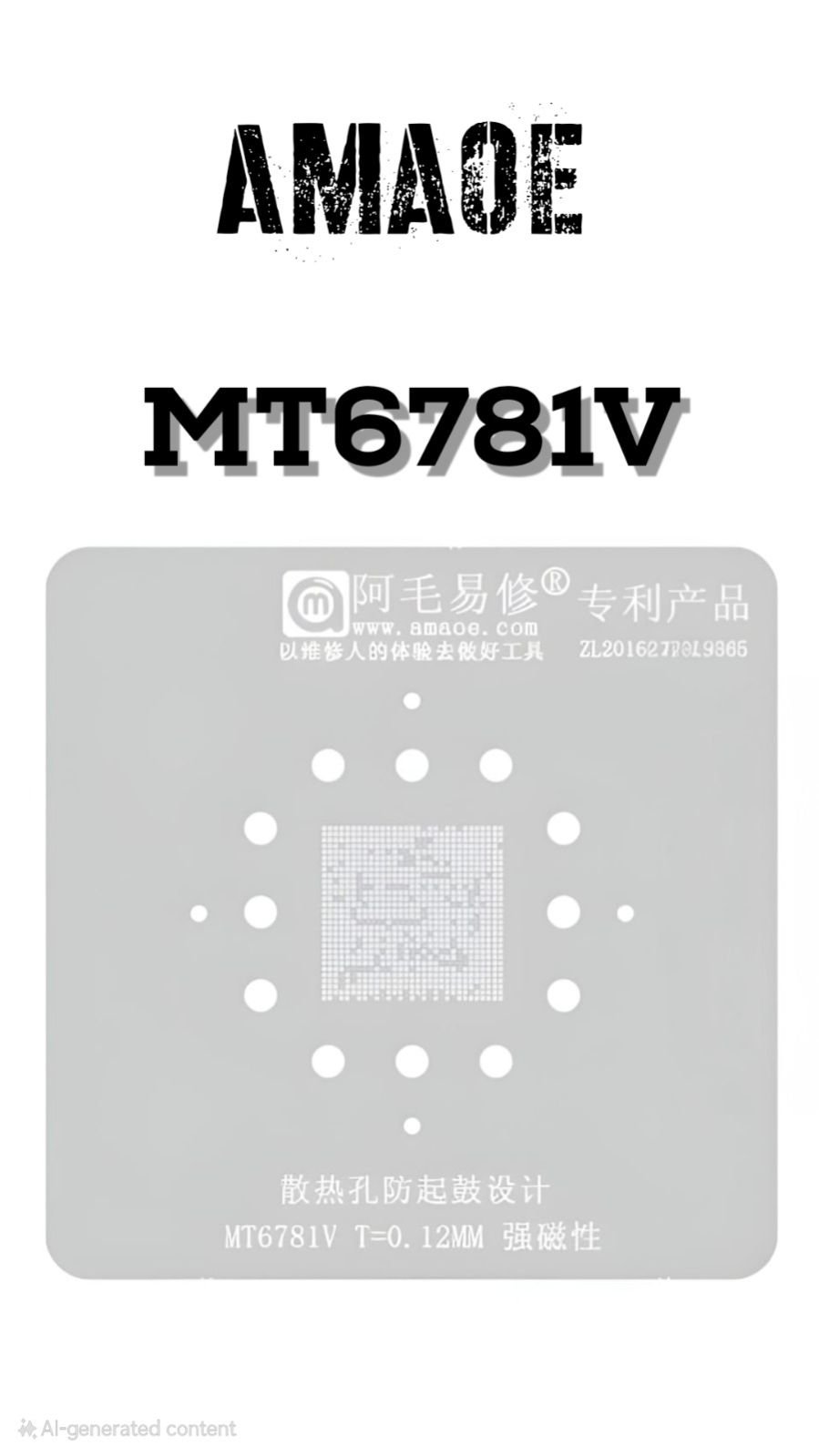 AMAOE MT 6781V STENCIL DESIGNED FOR ACCURATE SOLDER PASTE DEPOSITION ON MEDIATEK MT6781V IC, ENSURING PRECISE COMPONENT ALIGNMENT AND CLEAN REBALLING ON MOBILE PCBS.