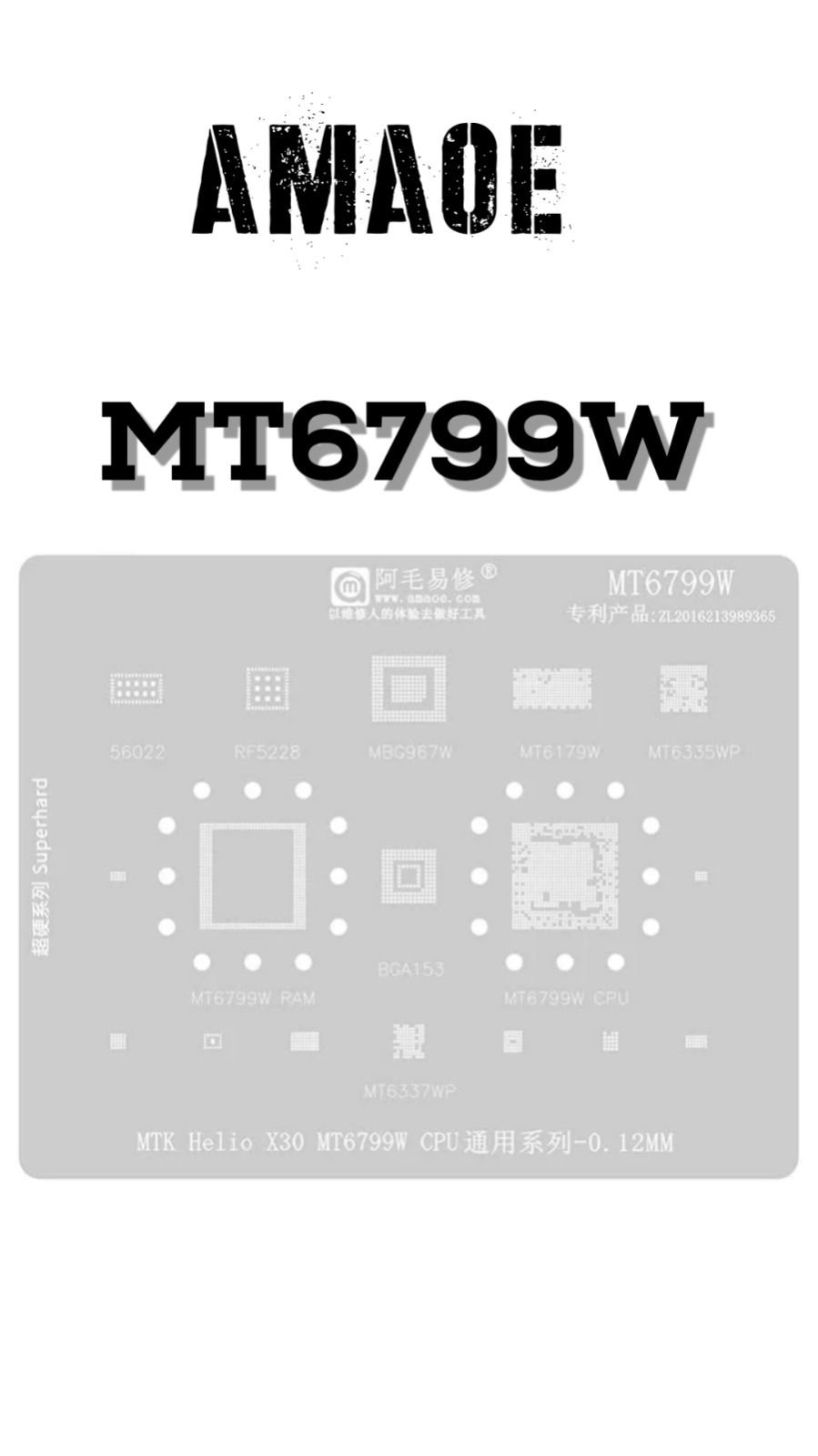 AMAOE MT6799W STENCIL DESIGNED FOR ACCURATE SOLDER PASTE OR BGA REBALLING ON MT6799W CHIP, ENSURING CLEAN AND PRECISE COMPONENT ALIGNMENT ON MOBILE PCBS.