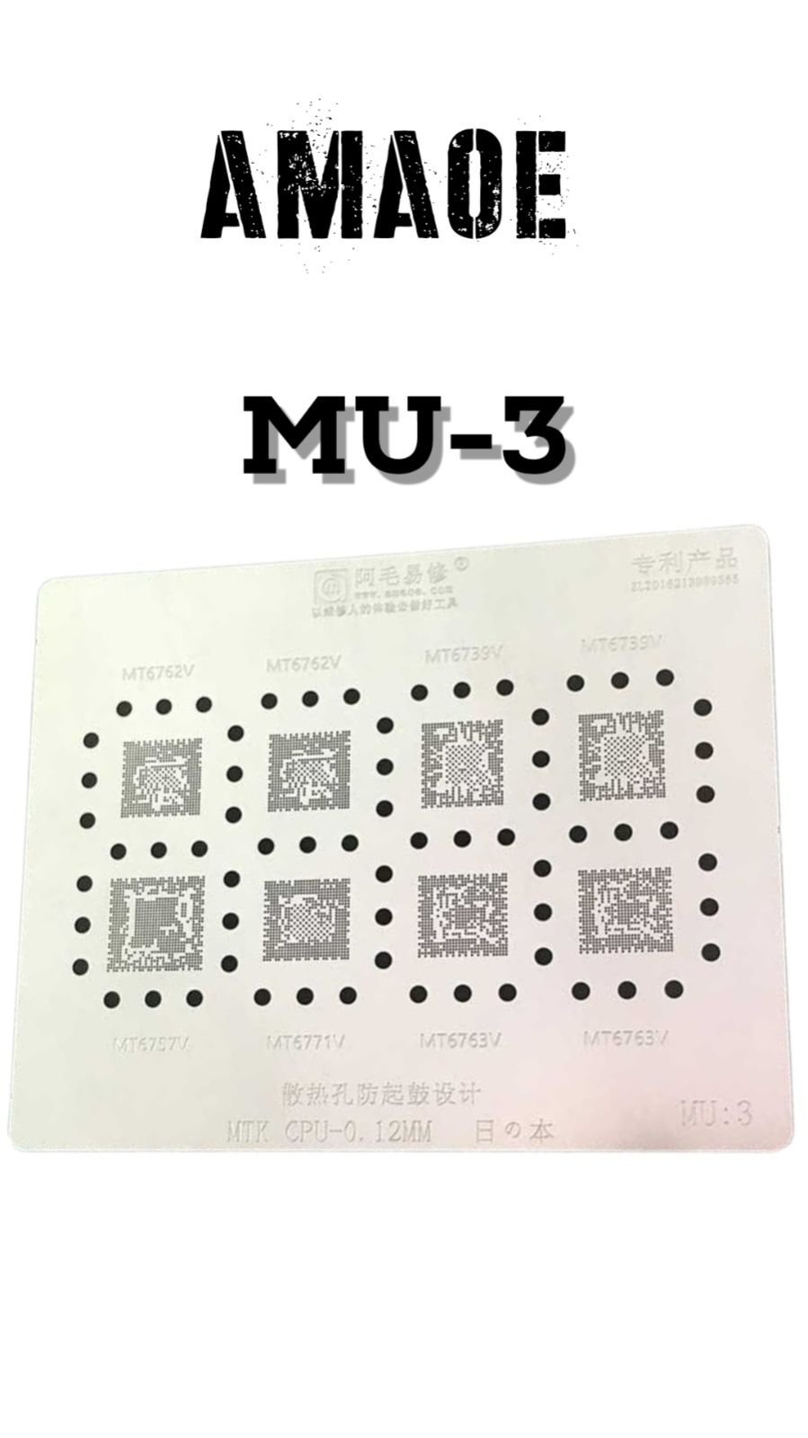 AMAOE MU3 STENCIL – 0.12 MM STEEL STENCIL FOR MTK BGA CHIP REBALLING AND MOBILE BOARD REPAIR.
