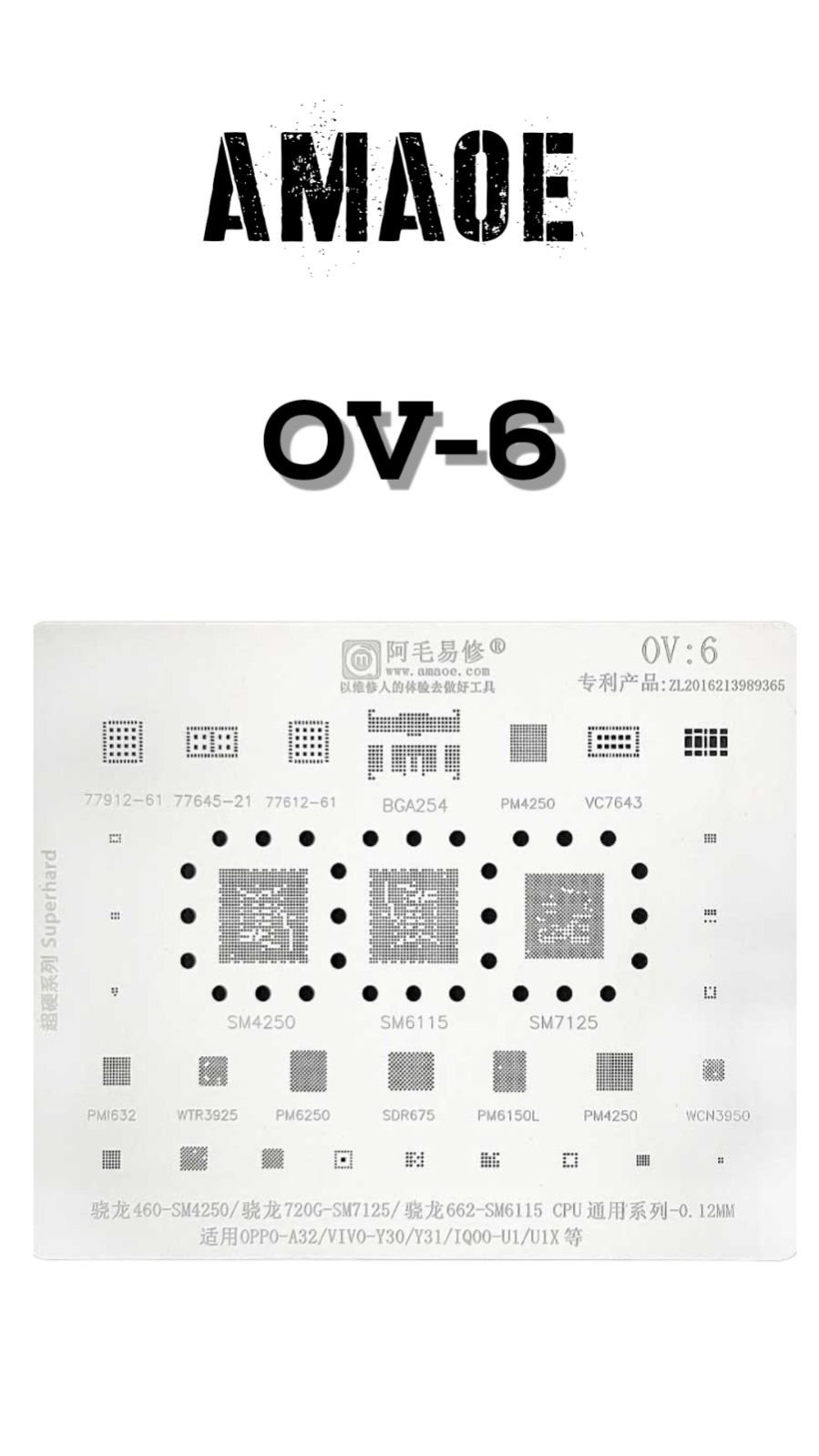 HIGH-QUALITY 0.12 MM JAPANESE STEEL BGA REBALLING STENCIL FOR OPPO/VIVO CPU & BOARD REPAIR. IDEAL FOR ACCURATE SOLDER PASTE/BALL DEPOSITION IN PROFESSIONAL MOBILE MOTHERBOARD WORK.