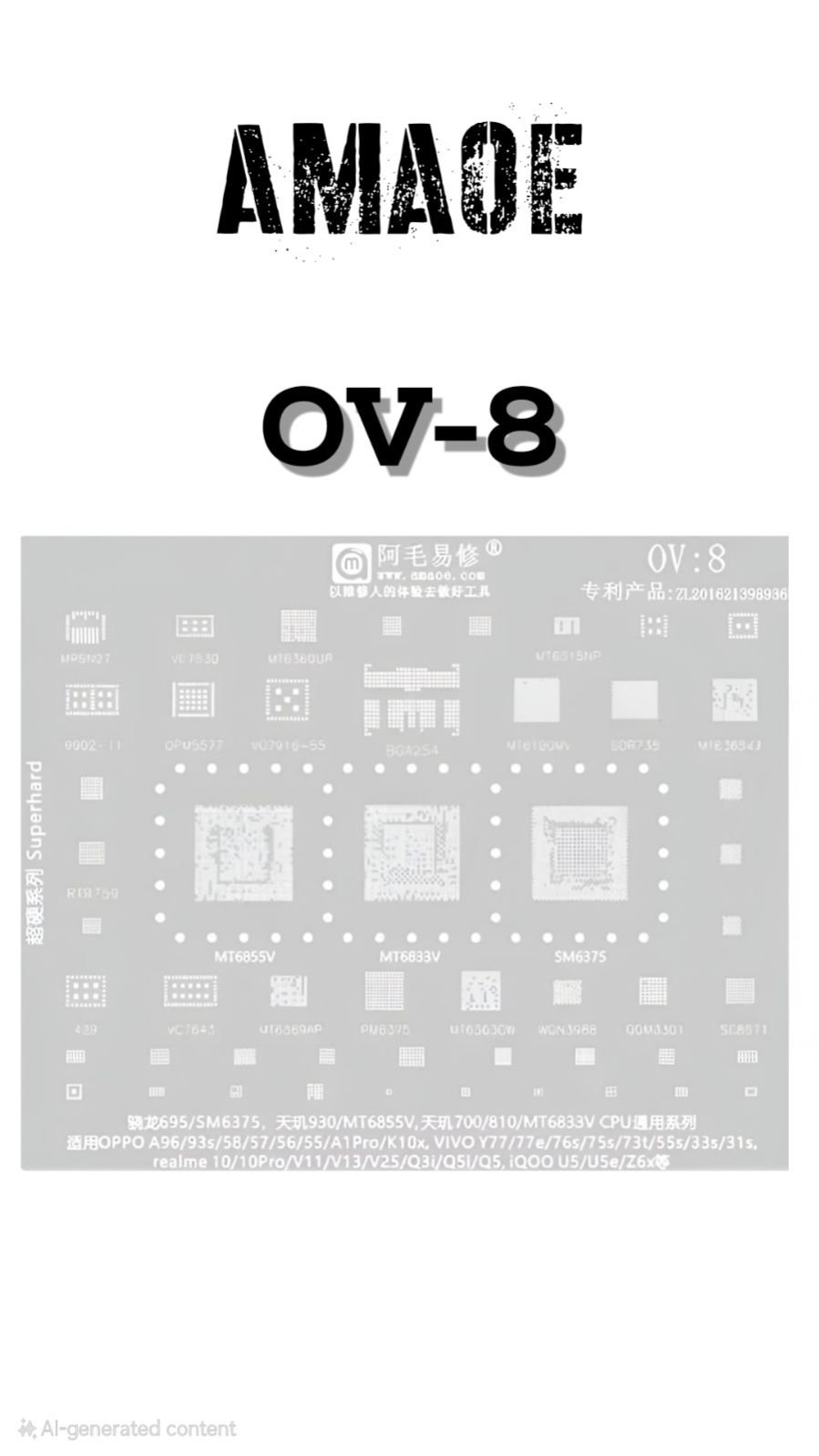 AMAOE OV8 STENCIL PRECISION BGA REBALLING TOOL FOR SM6375, MT6855V, MT6833V CPU.