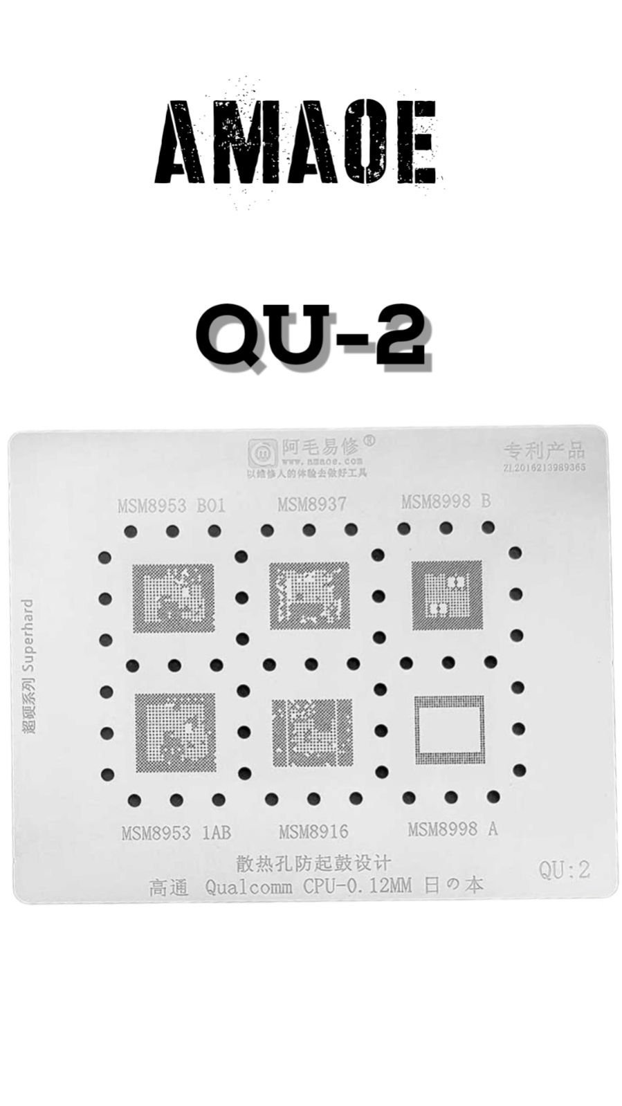 AMAOE QU2 STENCIL FOR PRECISE SOLDER PASTE APPLICATION ON SMD PADS, IDEAL FOR ACCURATE IC REBALLING AND FAST, RELIABLE SOLDERING.