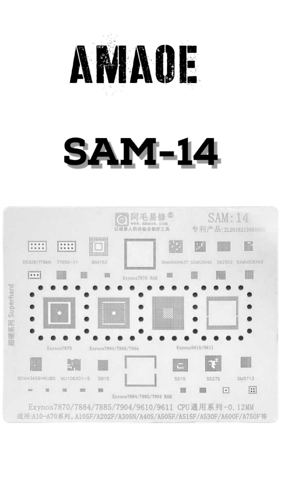 AMAOE SAM 14 STENCIL IS USED FOR PRECISE SOLDER PASTE APPLICATION ON PCB PADS, ENSURING ACCURATE COMPONENT PLACEMENT AND RELIABLE SOLDERING.