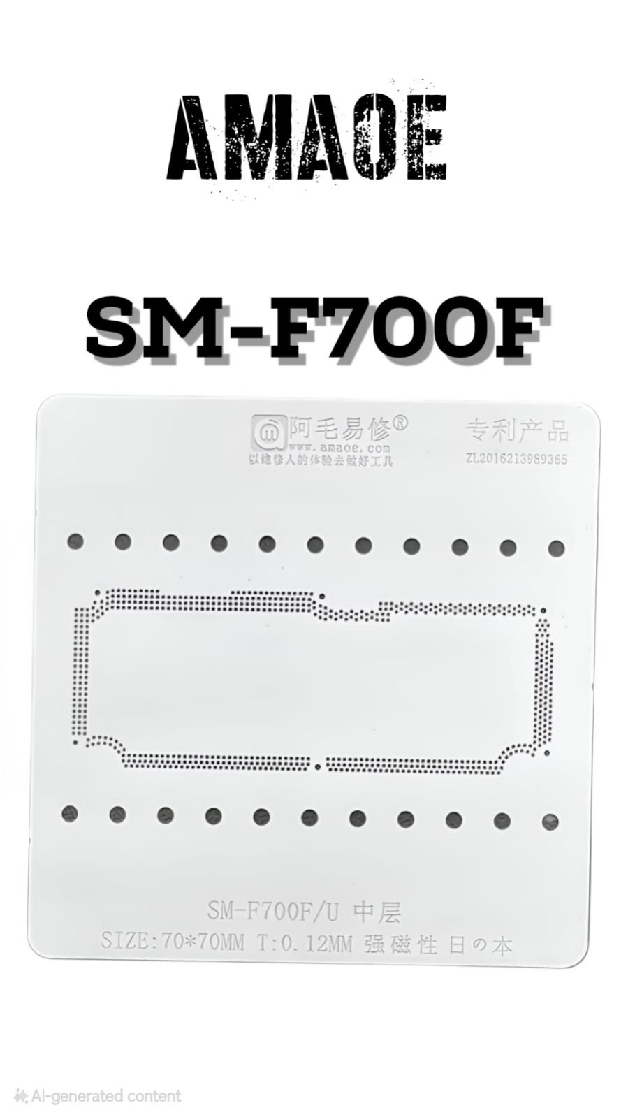 AMAOE SM-F700F/U MIDDLE LAYER BGA REBALLING STENCIL DESIGNED FOR PRECISE AND EFFICIENT REBALLING OF SAMSUNG Z FLIP MOTHERBOARD, MADE FROM HIGH-QUALITY JAPANESE STEEL FOR DURABILITY AND ACCURACY.