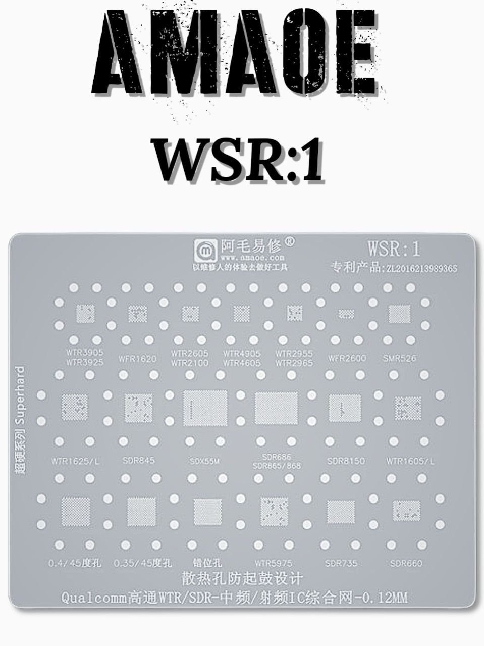 HIGH-QUALITY AMAOE WSR-1 STENCIL DESIGNED FOR PRECISE REBALLING OF WTR AND SDR IC CHIPS, MADE FROM DURABLE JAPANESE STEEL FOR ACCURATE AND LONG-LASTING PERFORMANCE.
