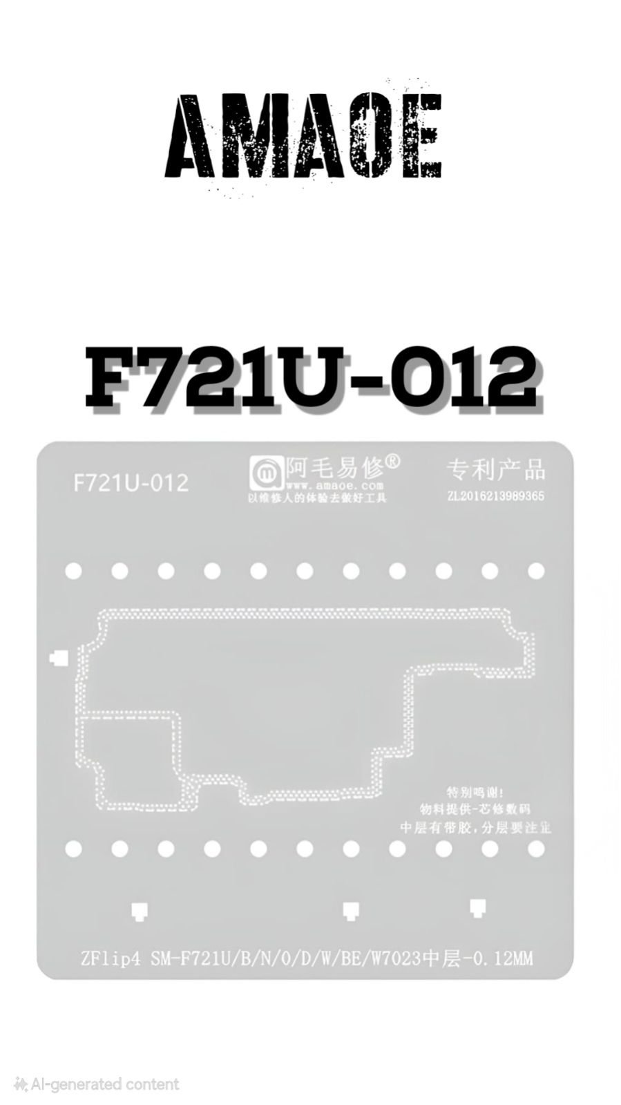 AMAOE ZFLIP4 SM-F721U-012 STENCIL IS A HIGH-QUALITY BGA REBALLING STENCIL DESIGNED FOR SAMSUNG ZFLIP4 MOTHERBOARD REPAIR.