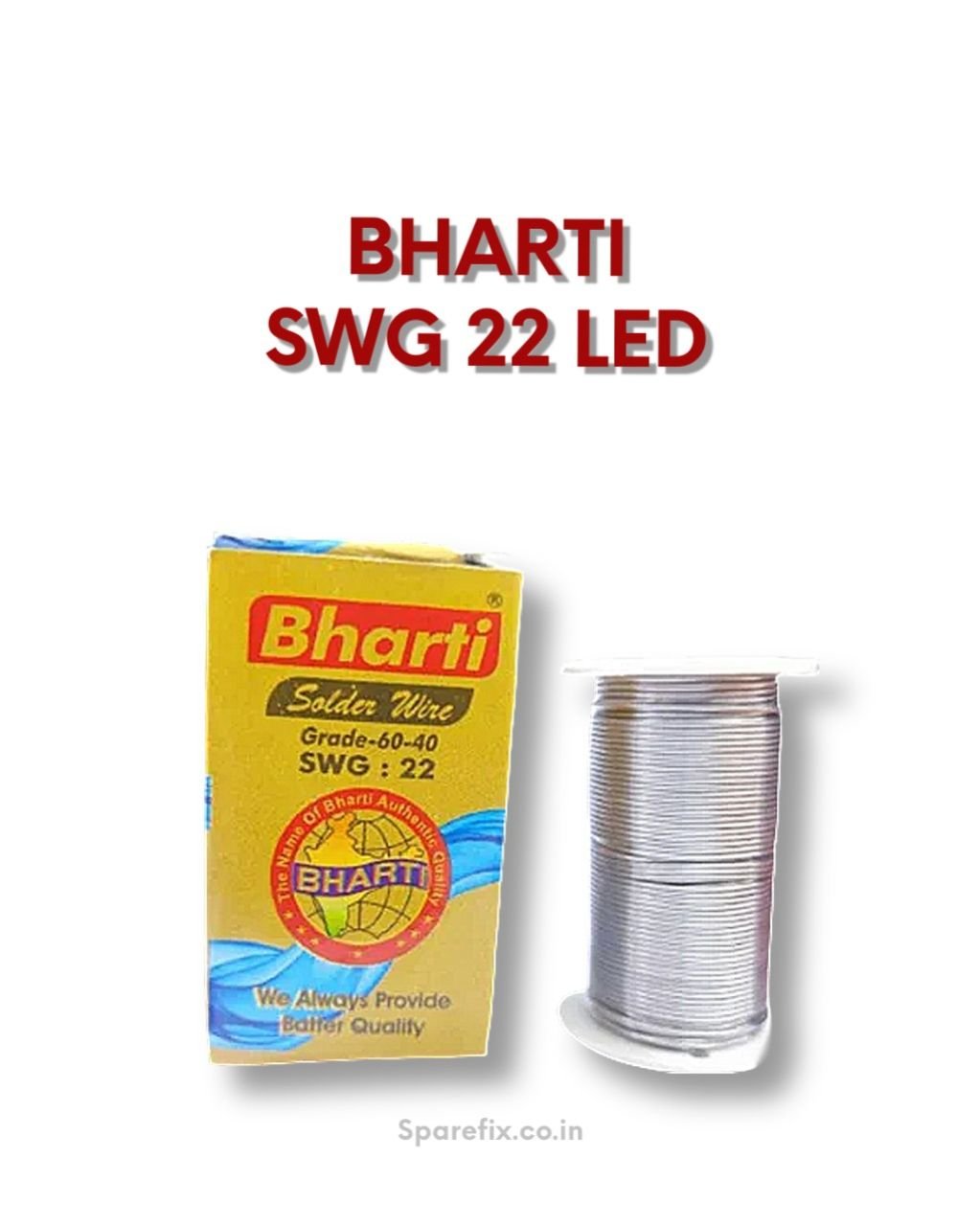 BHARTI SWG22 IS A FLUX-CORED SOLDER WIRE WITH A 60/40 TIN-LEAD ALLOY, COMMONLY USED FOR ELECTRICAL AND ELECTRONICS SOLDERING JOBS ON PCBs, WIRES, CONNECTORS AND GENERAL REPAIR WORK.