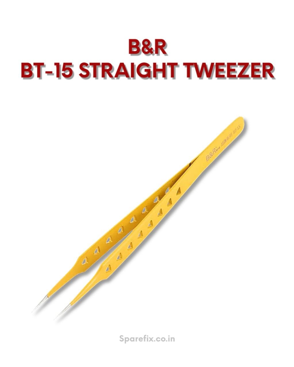 PRECISION TWEEZER FOR MICRO REPAIR WITH ANTI-STATIC, HIGH GRIP, AND DURABLE STAINLESS-STEEL BODY. PERFECT FOR PCB, IC, AND SMALL COMPONENT HANDLING.