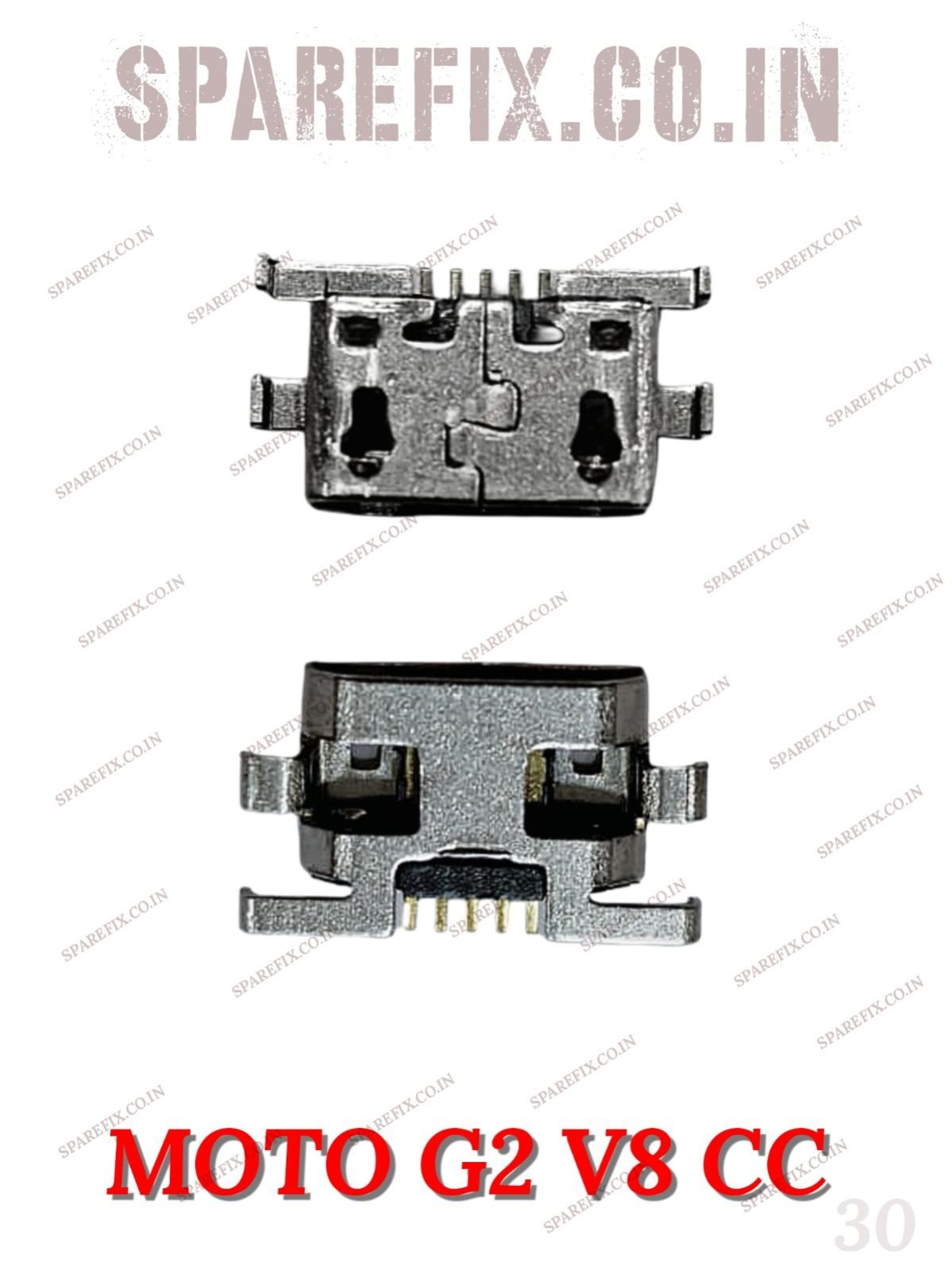 MOTO G2 V8 CHARGING CONNECTOR IS A MICRO USB PORT FOR CHARGING AND DATA TRANSFER.