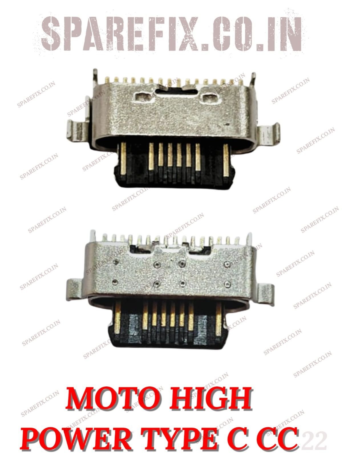 MOTO HIGH POWER TYPE-C CHARGING CONNECTOR: AN APPROVED USB-C PORT THAT SUPPORTS HIGH-POWER CHARGING (FAST CHARGE), HANDLING INCREASED CURRENT & VOLTAGE TO CHARGE THE DEVICE FASTER WHILE ENSURING SAFETY AND PROPER CONNECTION.