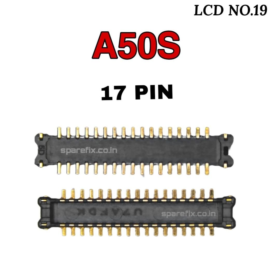 A FLEX CONNECTOR THAT LINKS THE SAMSUNG A50S LCD DISPLAY TO THE MOTHERBOARD,ENABLING SMOOTH TRANSMISSION OF DISPLAY AND TOUCH SIGNALS.