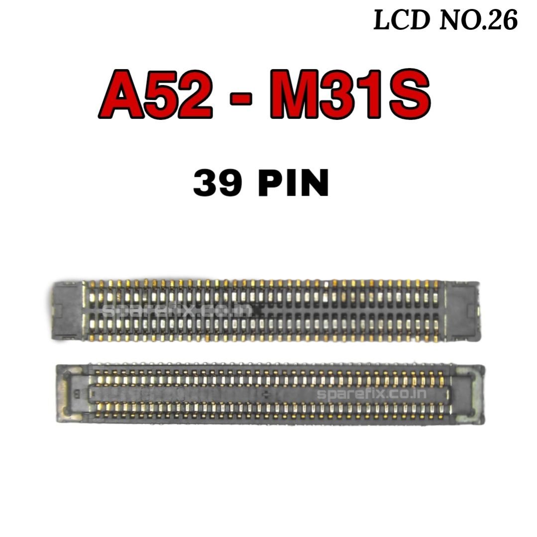 A FLEX CONNECTOR THAT LINKS THE SAMSUNG A52"S LCD DISPLAY TO THE MOTHERBOARD, ENABLING SMOOTH TRANSMISSION OF DISPLAY VISUALS AND TOUCH SIGNALS.