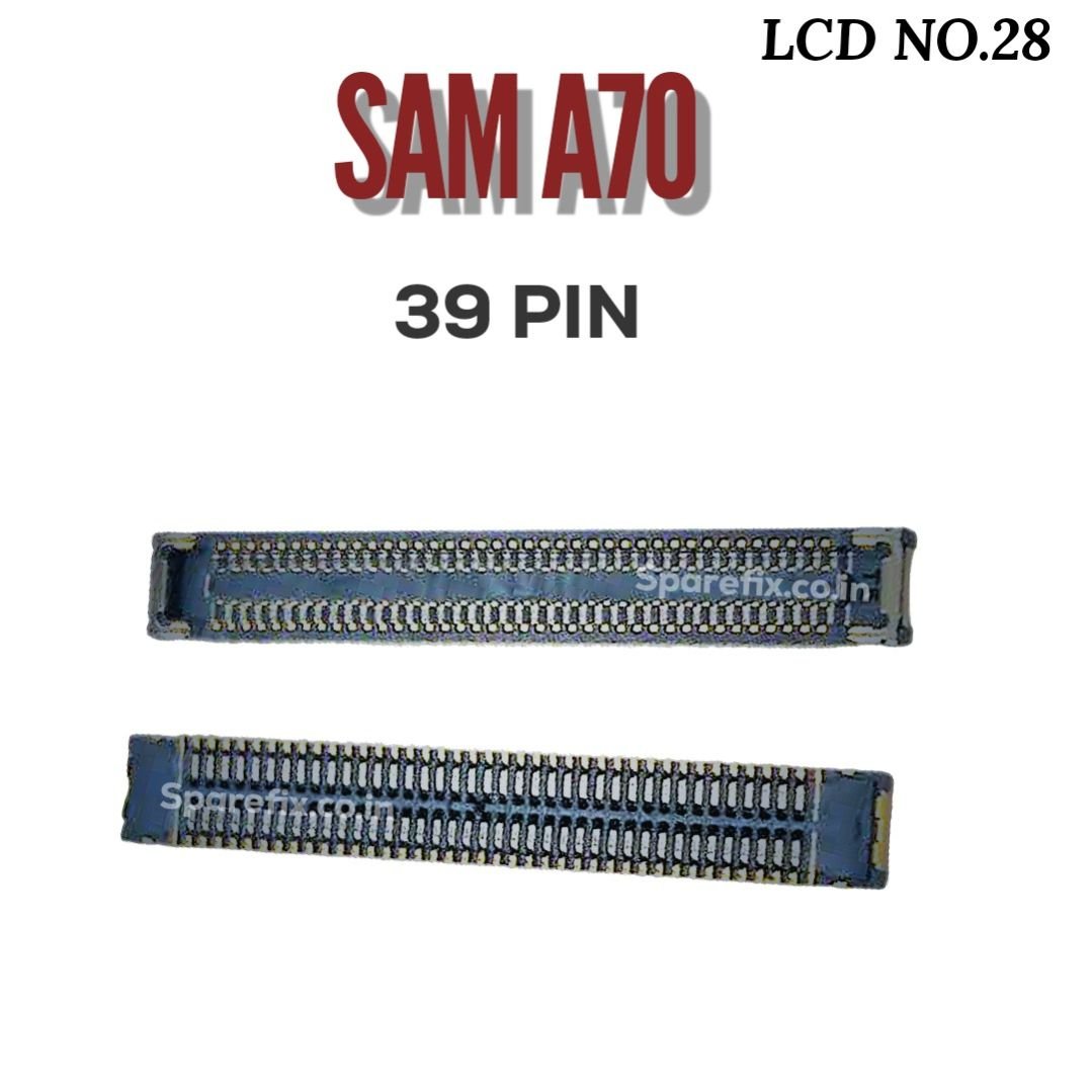 A FLEXIBLE CONNECTOR THAT LINKS THE SAMSUNG A70'S LCD SCREEN TO THE MOTHERBOARD,ENSURING SMOOTH TRANSFER OF DISPLAY AND TOUCH SIGNALS FOR PROPER SCREEN FUNCTION.