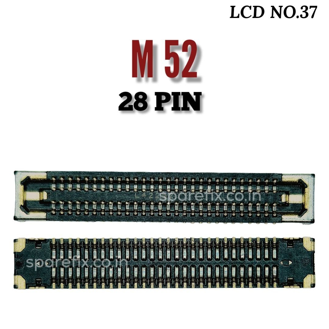 SAMSUNG M52 LCD CONNECTOR IS A 28-PIN FPC THAT CONNECTS THE LCD AND TOUCH SCREEN TO THE MOTHERBOARD, TRANSMITTING DISPLAY AND TOUCH SIGNALS.