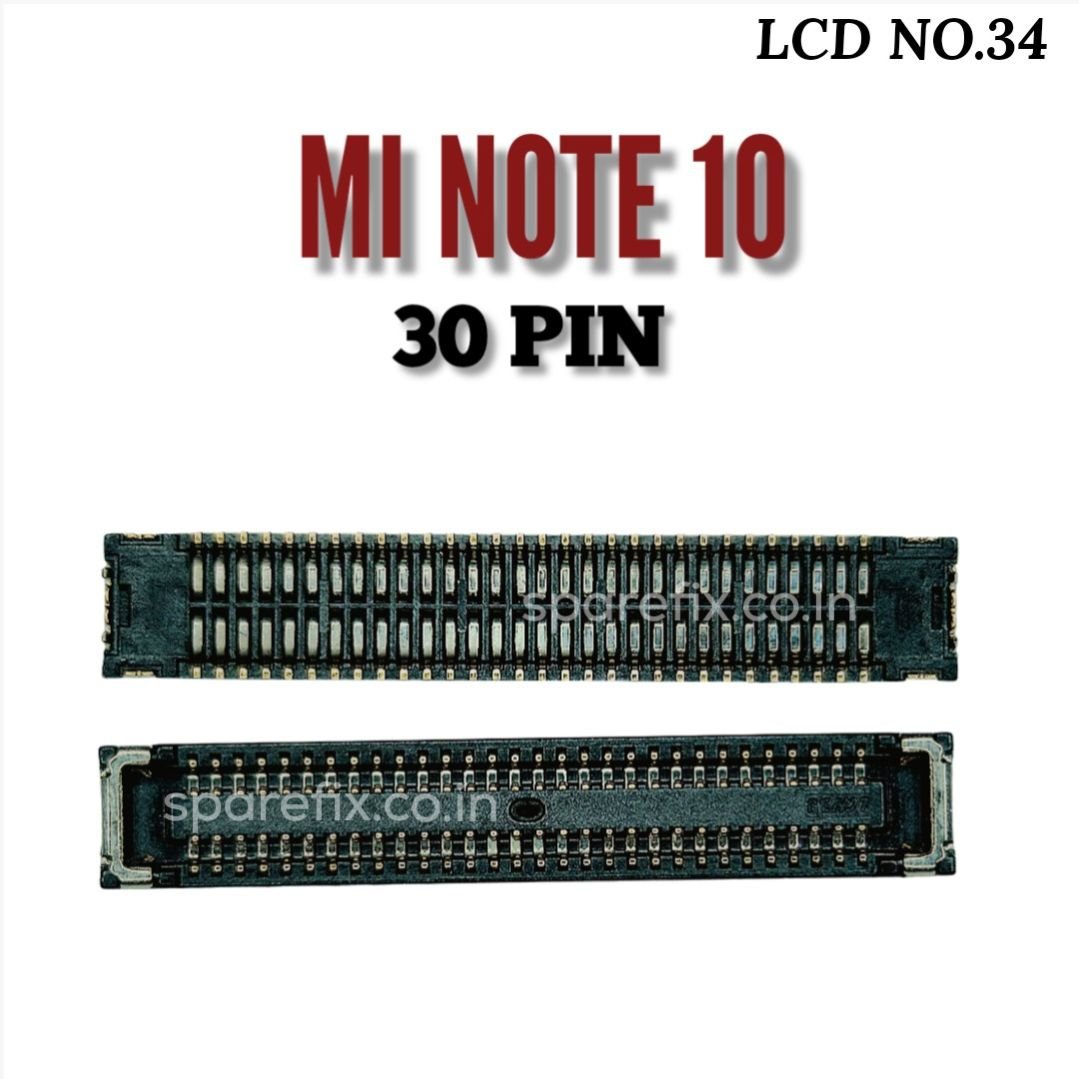 THE XIAOMI MI NOTE 10 LCD CONNECTOR IS A 30-PIN FPC INTERFACE THAT CONNECTS THE LCD AND TOUCH SCREEN TO THE MOTHERBOARD, TRANSMITTING DISPLAY AND TOUCH SIGNALS.